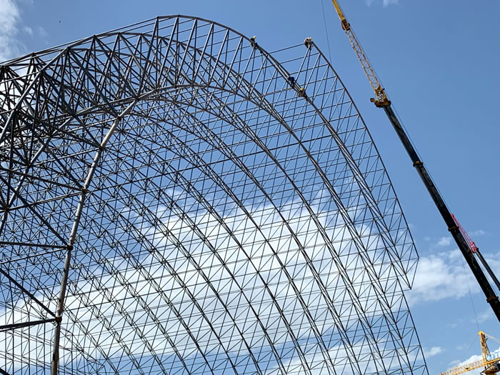 (2)网架加工前应对现场尺寸进行复测,确认无误后方可进行加工、安装;网架制作、运输、安装应遵守《空间网格结构技术规程》JGJ7-2010、《钢网架漳平螺栓球节点》JG/T 10-2009、《钢网架漳平螺栓球节点用高强度螺栓》 GB/T 16939-2016、《漳平钢结构漳平工程漳平施工规范》 GB50755-2012、《漳平钢结构漳平工程漳平施工质量验收标准》 GB50205-2020。